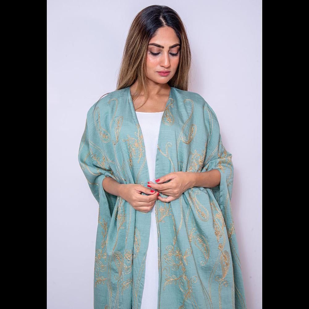 - اللون: أخضر فاتح مزخرف بنقوش ذهبية أنيقة.