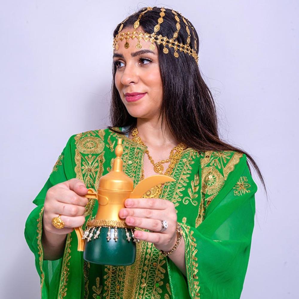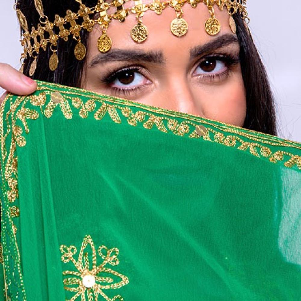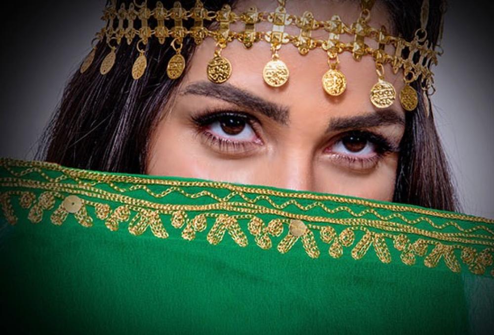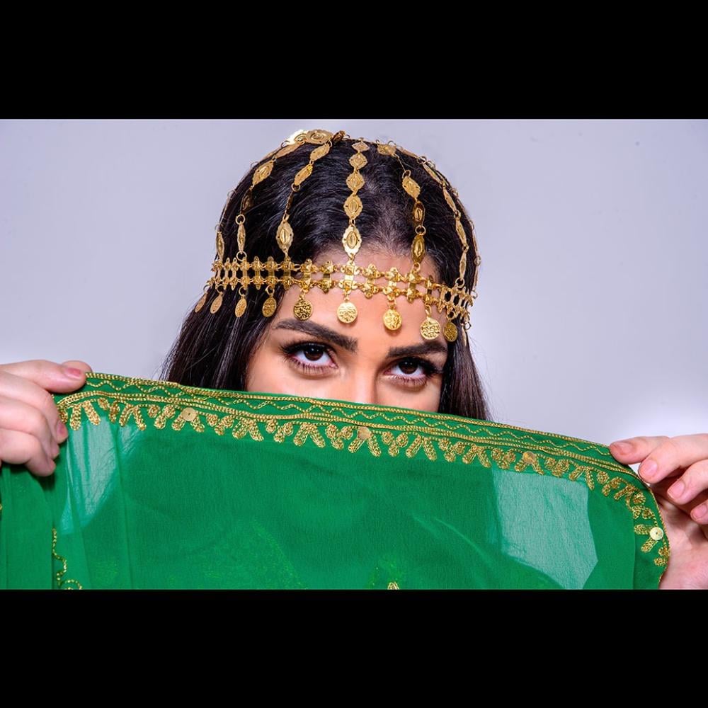 - الإضافات: إكسسوارات ذهبية للرأس مستوحاة من التراث.