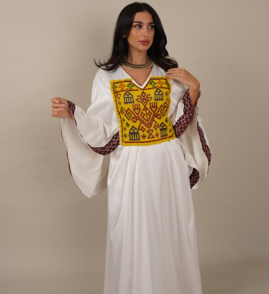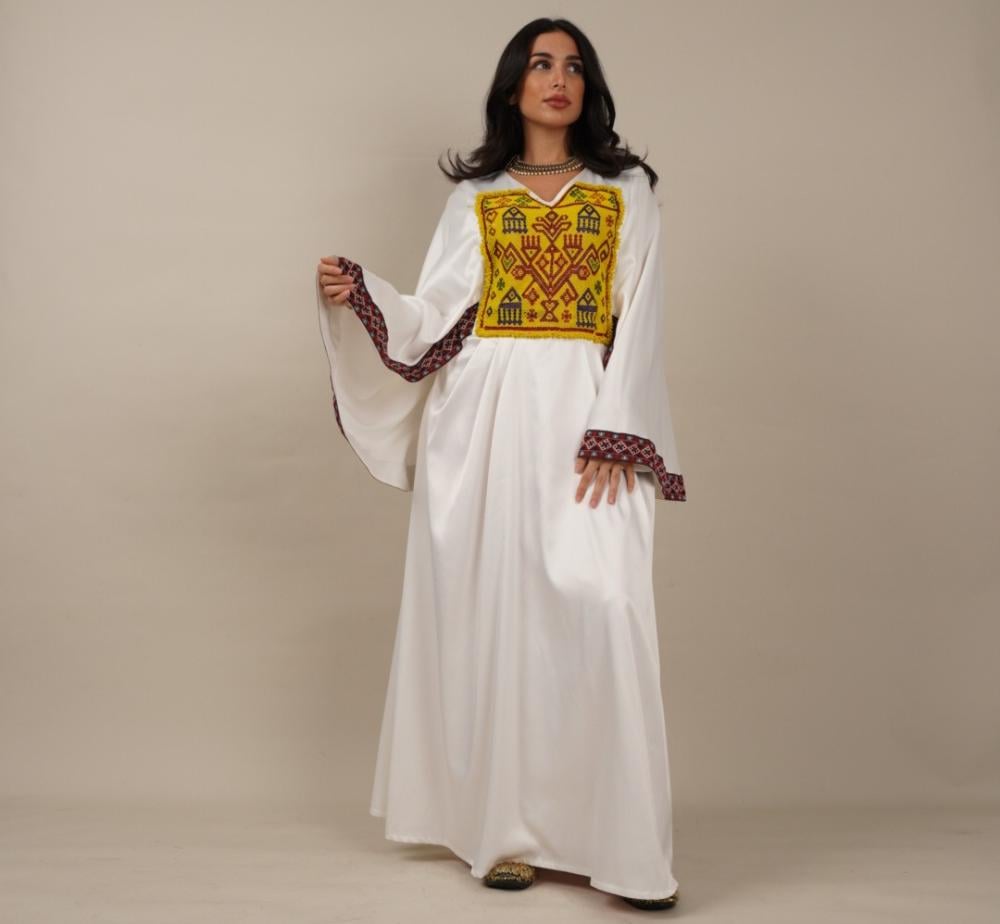 • تألقي بإطلالة تجمع بين الأصالة والفخامة مع فستان التراث، بتصميم أنيق و تطريزات يدوية مستوحاة من الثقافة العربية العريقة.