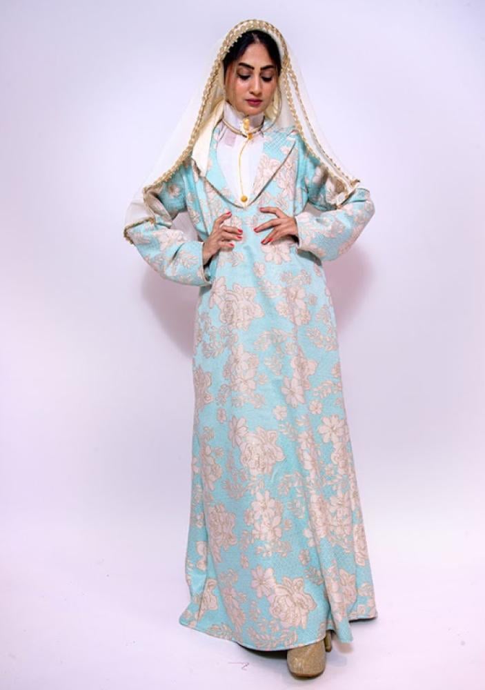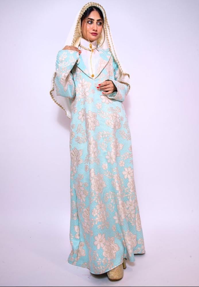 - القماش السماوي الفاتح مع النقوش الزهرية البيضاء يمنحك إطلالة أنثوية ناعمة، بالإضافة إلى ملمس لطيف يريحك ويزيد من جمال حضورك وأناقتك اليومية.