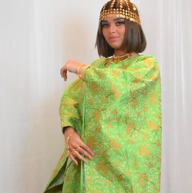 - لمسات تقليدية: هامة ذهبية تقليدية تُكمل الإطلالة الشرقية.
