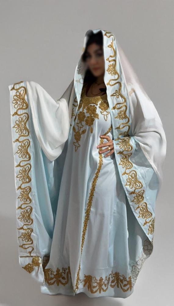 - اكتشفي سحر اللون السماوي بلمسة حجازية أصيلة، مع مسدح حجازي سماوي فاخر يعبّر عن ذوقك الرفيع ويمنحك إطلالة تنبض بالأناقة في كل مناسبة.