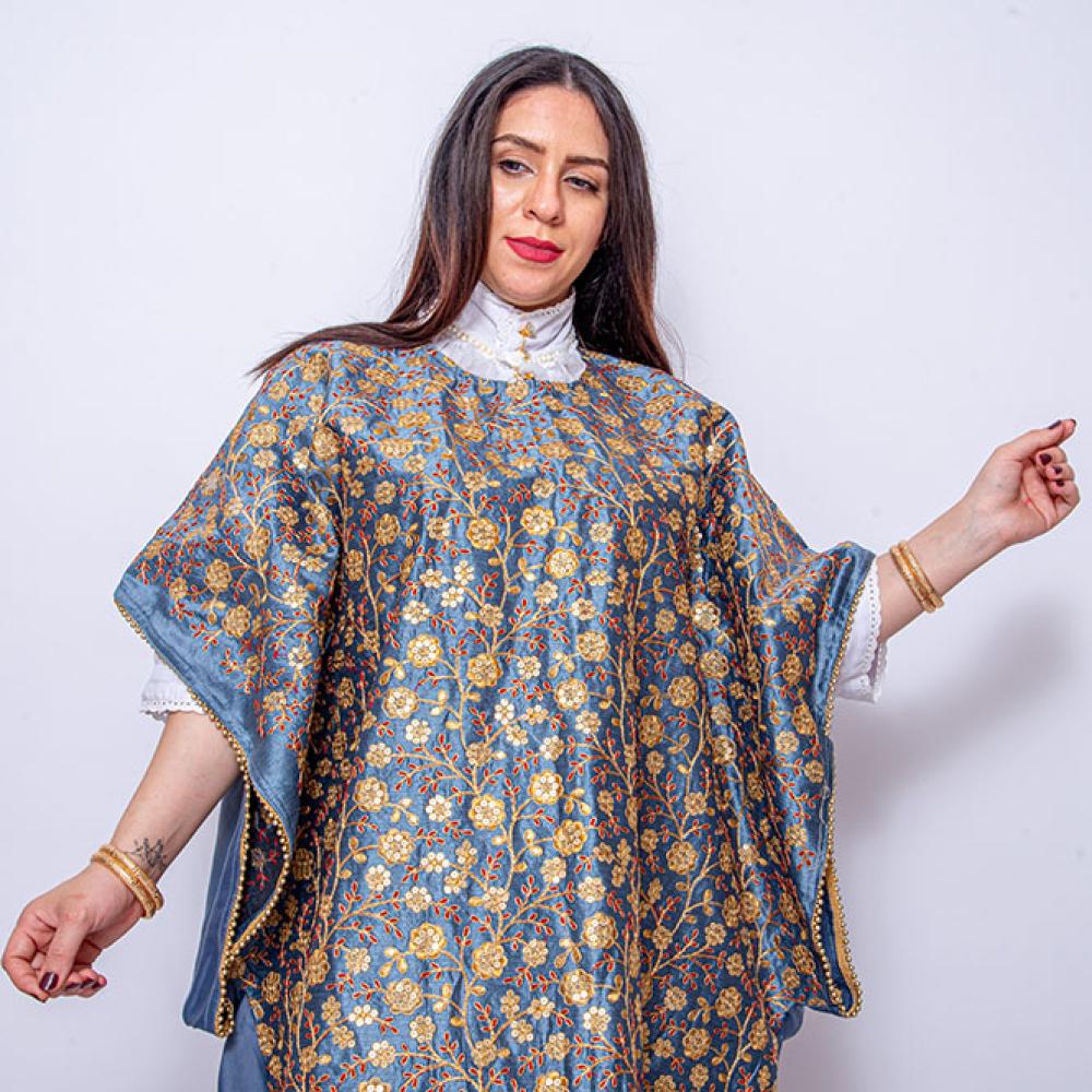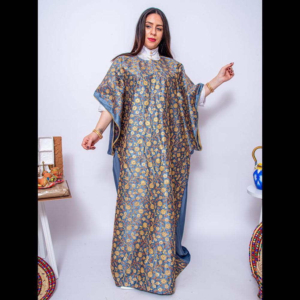 • لإطلالة تُعبّر عن هويتك بثقة، اختر مسدح رمادي بالكنتيل المطرز بالكنتيل الذهبي، حيث يلتقي التراث السعودي مع الفخامة.